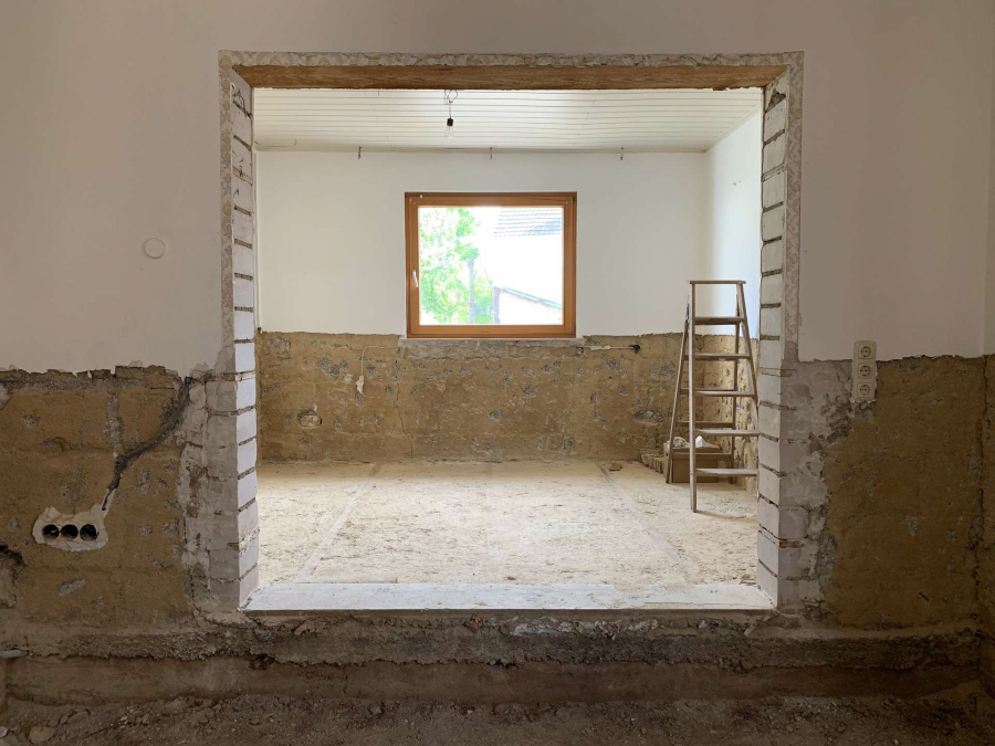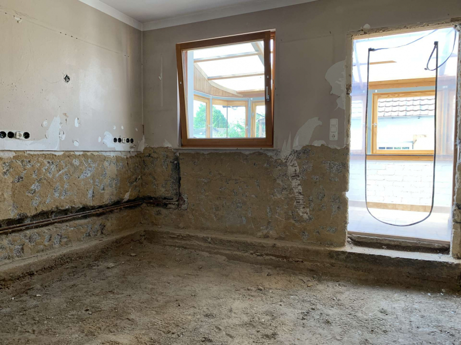 Das Erdgeschoss befindet sich derzeit im Rohbauzustand;