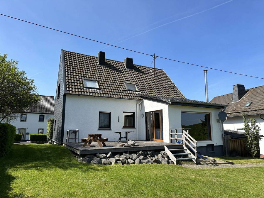 Dieses freistehende Wohnhaus mit Garage liegt in idyllischer Lage und verfügt über einen herrlichen Eifelblick.