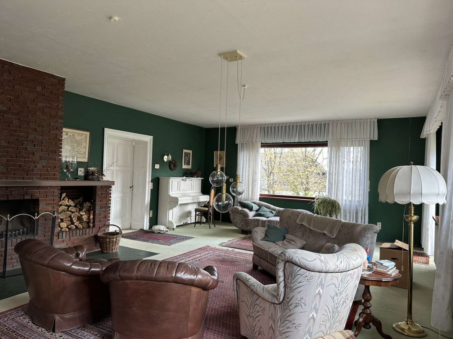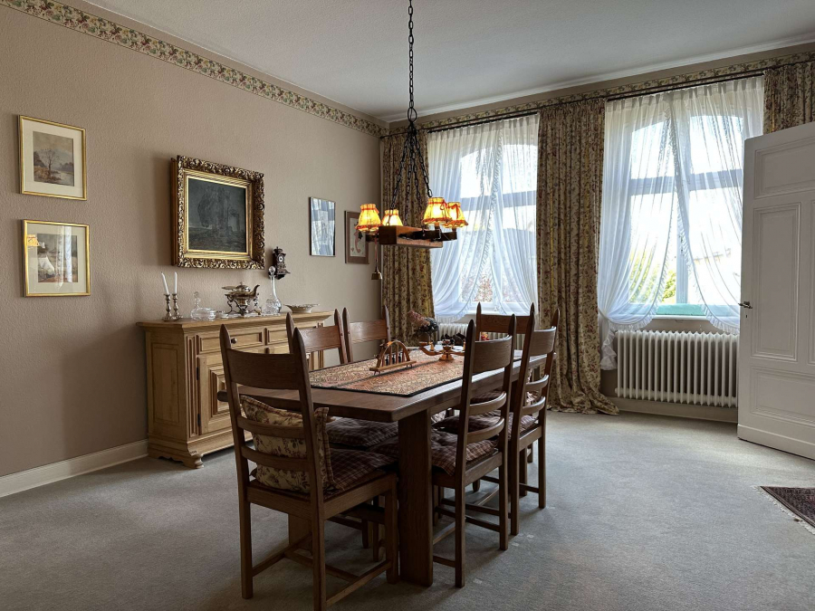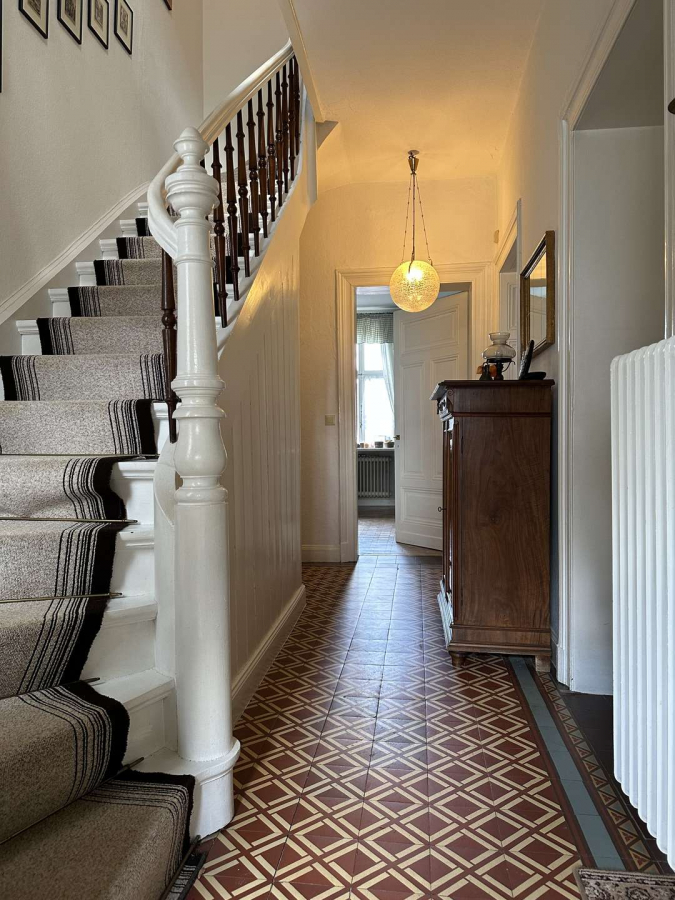 Bodenbeläge überwiegend in historische Fliesen, Eichenparkett sowie Teppich.